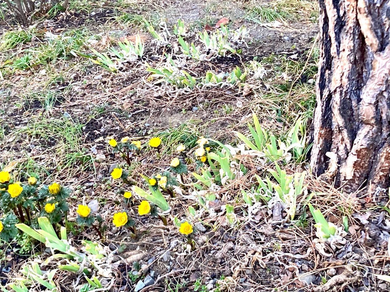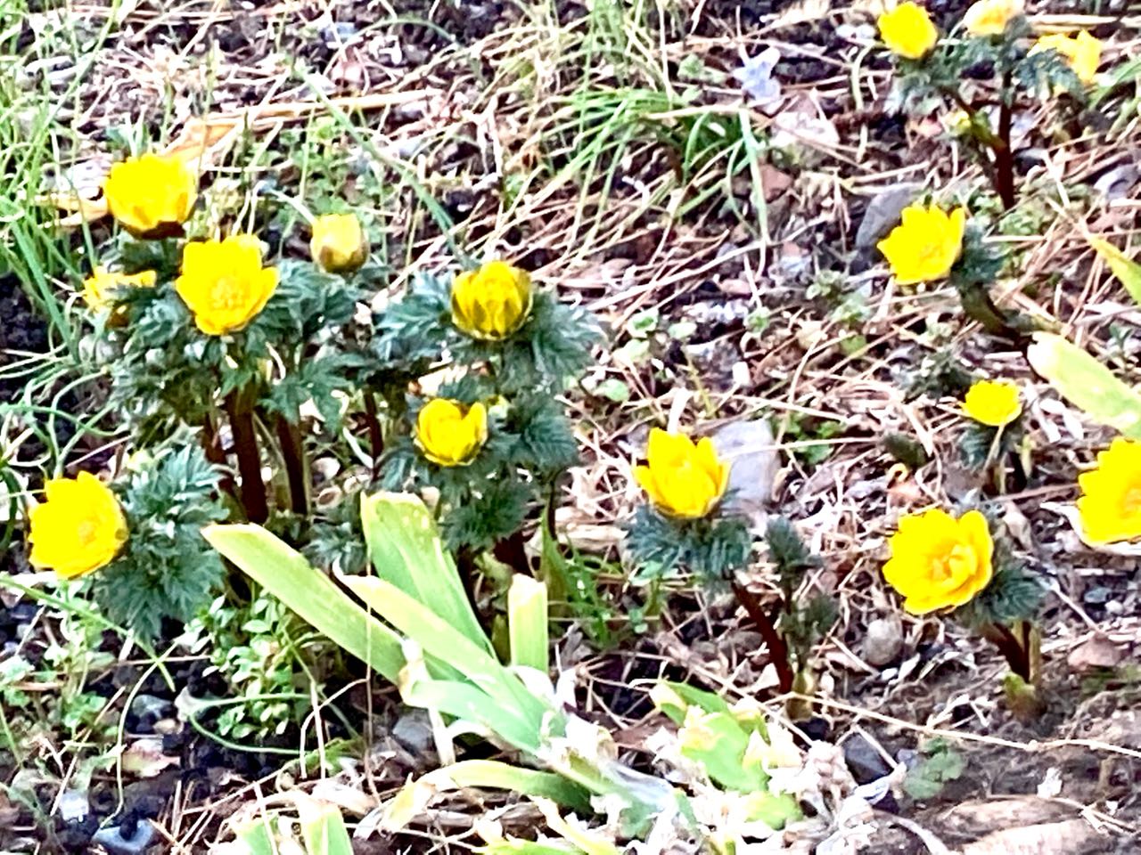 27日.我が家の→庭先の.大きな松の木の下にある→福寿草が、今..満開に.咲いて、います、長い冬を通り過ぎて、暖かい春になり、ポカポカするように、なると、福寿草の花が、自然に.顔を出して、小さい命に、→元気を.いただいています、