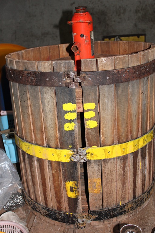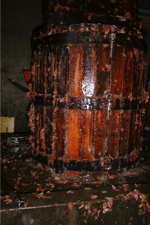 手搾りのワイン蔵です。 この機械がバスケットと呼ばれる最古からある機械の