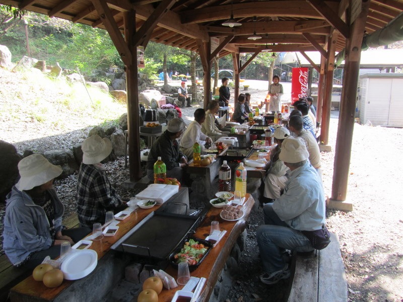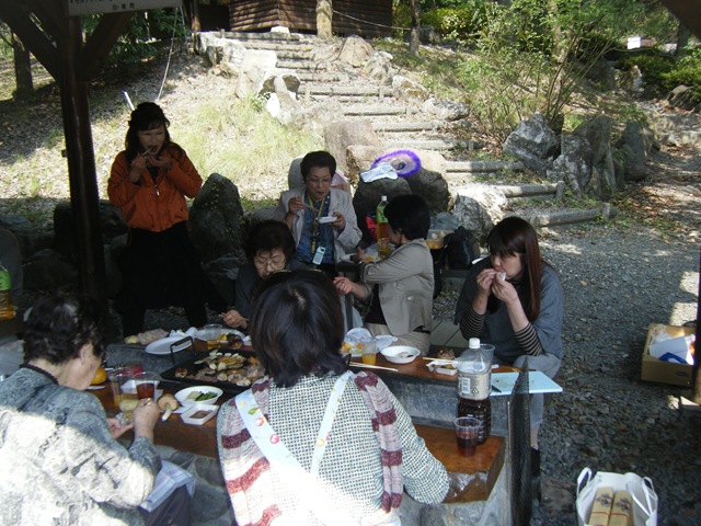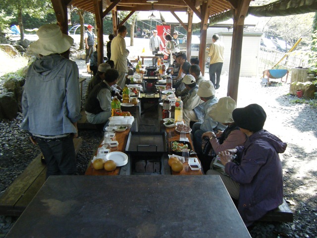 ☆ 秋晴れの中、南アルプス市のバーベキュー場で小野次郎さんを囲んで野外研修会をおこないました。