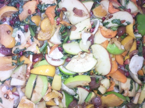 みんなで作った昼ごはん しし汁 炊き込みご飯 大学芋 から揚げ きゅうりもみ ぶどうなど