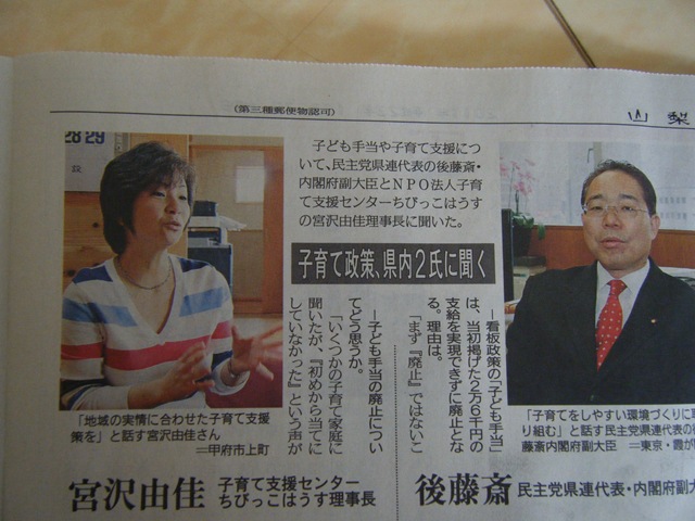 お願いしました。過日お会いした、福島の山梨に避難している方々の子どもの治療についての問題への取り組みのお話や