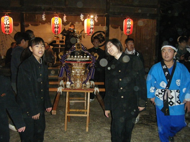 ☆ 翌日(10月10日)子どもたちが神社のお札を持って一軒一軒まわり、庭や玄関先で「ワッショイワッショイ」とお神輿で景気をつけてくれます。