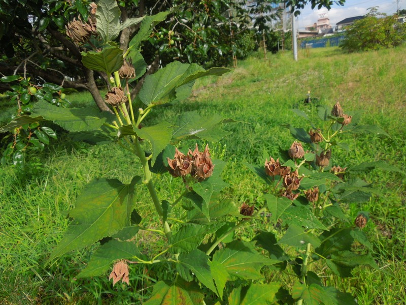 これは、芙蓉の花が咲いたあとです。ここに種が入っています。7月はきれいにピンクの大輪の花が咲いていました。この種のついたところも風情があってきれいで、私もこれを切って花瓶に挿したりします。同じように思う人がいて、やっぱりきれいなんだなと思いもいました。5日誠子