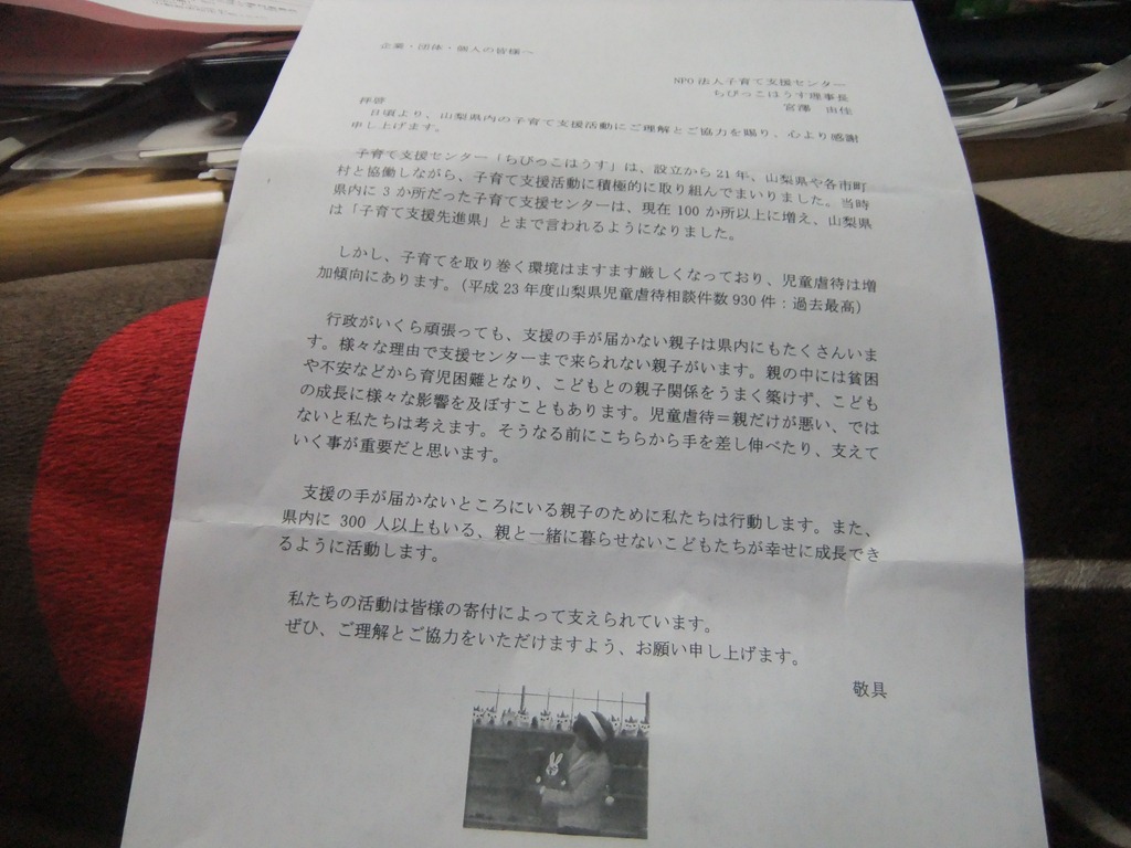 山梨里親の会 および東日本大震災被災地の「里親の会」に全額寄付