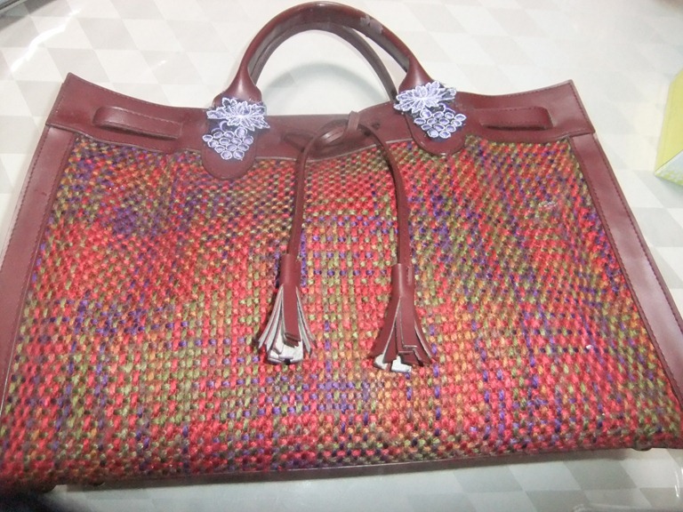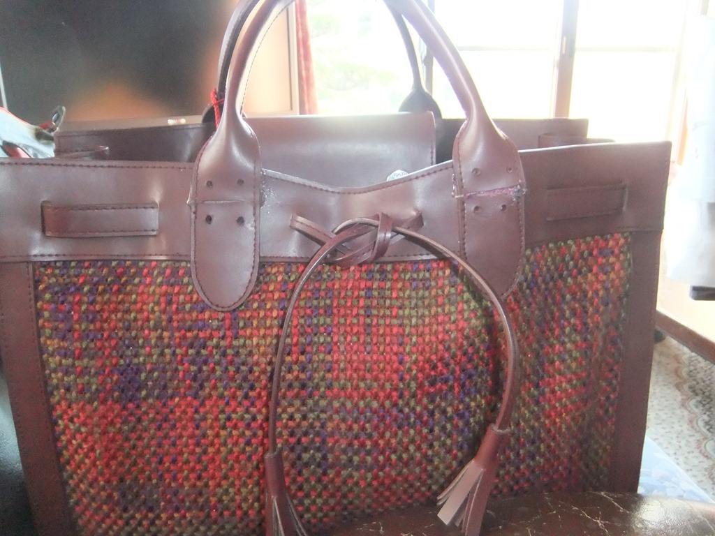 1月31日(木)、気温が低く日陰の雪はなかなか解けません。 大好きな「手提げカバン」の「とって」が取れそうになってしまい、昭和の「イオンタウン」の靴の修理屋さんに行きました。 この取っ手を全部取らなければ出来ないと言われた為に自分で直すことにしました。三階の手芸屋さんに行き皮を縫う糸を買いました。皮が固く縫えません。「キり」で穴を開けることも出来ません。考えた末に「キリ」を「ガスレンジ」で焼き穴を開け皮縫い糸で取っ手がしっかり固定さました。縫い目がわからないように葡萄のレ-ス生地を切り抜きボンドで貼り付け、きれいに出来上がりました。毛糸針を使いました。ボンドが乾くまで4時間かかりました。 自分では満足です。 31日撮影、内藤はつみ、