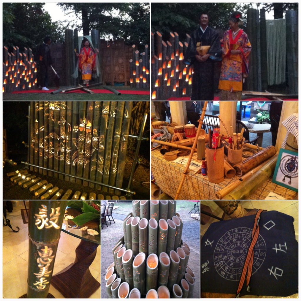 沖縄ダイニングティーダの店内やガーデンに配置されたこれらの竹はすべて新郎が収集し、手掛けた作品です。