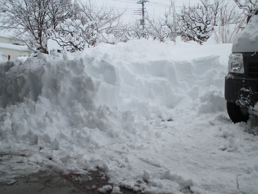 豪雪に1本道の国道はみるみるうちに埋まり、軒先より高く積まれた雪にどうすることも出来ません。