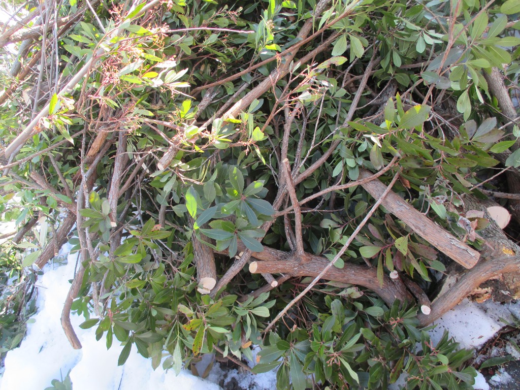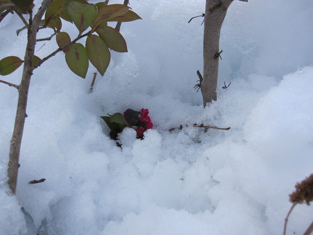(雪に埋まった椿を掘り出しました)