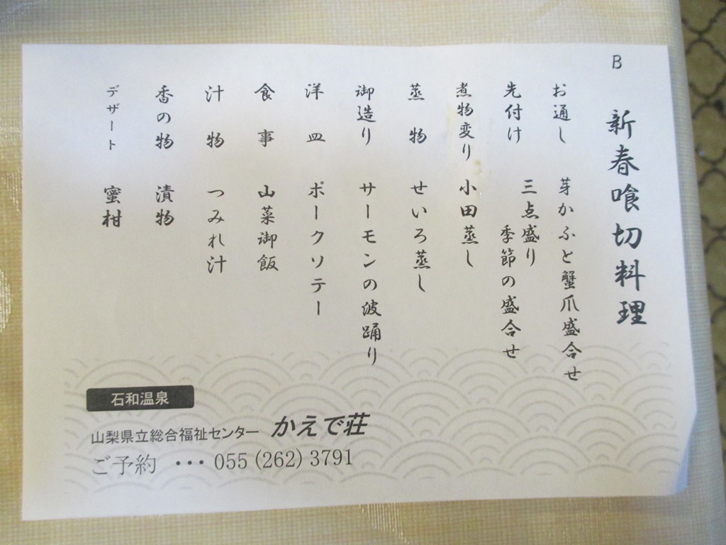 2月27日(木)石和「かえで荘」3日目 午後12時~石和のかんぽの湯~仕事の会合に小松の農園の奥様「友人」と出席、有意義な時間を過ごして来ました。かえで荘の道前が小松農園です。28日投稿内藤初三