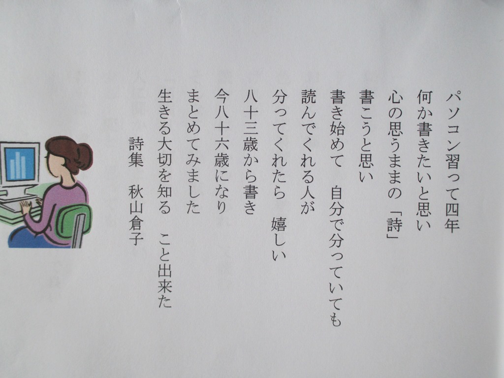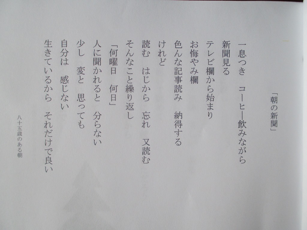 26年3月1日(土)朝からどんよりした曇り空!天気情報では夜半にかけて雪になりそうです。 3泊4日の兄弟会で睡眠不足、9時過ぎに起床です。昨日実家「義姉86才」に一冊の詩集を頂きました。兄は7年前82才で他界しました。仲良いご夫婦で、その時の思いと寂しさにに、4年前にパソコンを始めました。個人情報の者は取り除いた、129日の詩集記録です。私の長男とお見合い結婚です。武川診療所事務員でした。私の弟が小学校1年入学、4年の弟、わたしが中学1年になる3月に嫁いで来ました。兄妹と同じように育ててくれました。2人の娘を育てながらの生活は大変だったことでしょう。現在では考えられない結婚です、苦労したと思います。姉さんありがとうございました。3月1日、撮影 内藤初三