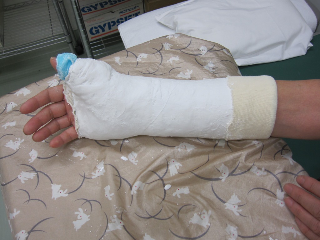 すると1か月半は石膏でギブスをすると言われぐるぐる巻きにされました。