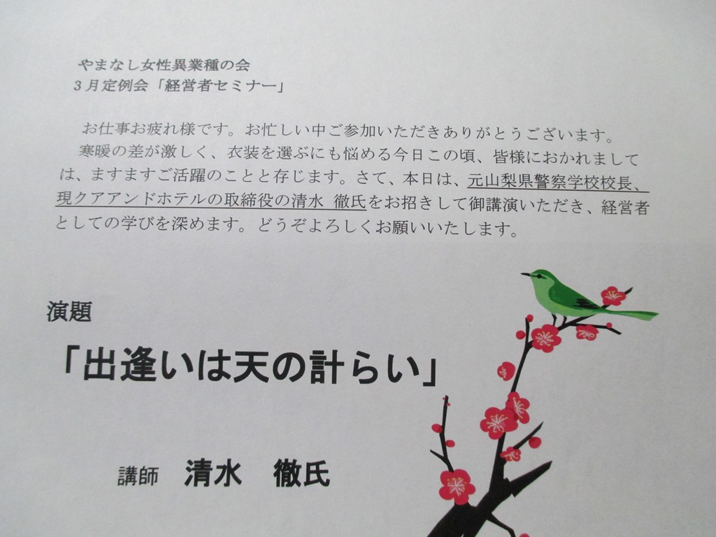 題『出逢いは天の計らい』講師 清水徹 氏