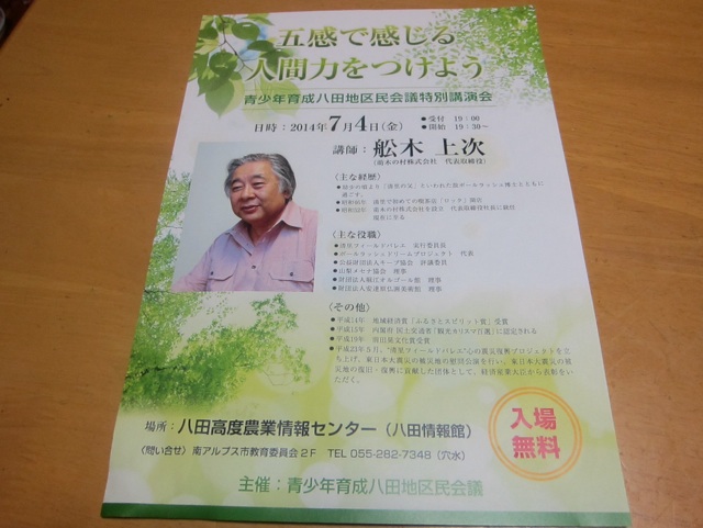 6月13日(金)晴 、花「ソリダコ」を740本出荷し、そのあしで石和の慶山で仕事の勉強会に参加しました。人と出会い沢山のことを学んでいます。この事が、起業の将来生きる力となっていく事を願い、今回の出会いに感謝したい。 金曜日は孫達は習い事で帰りが遅く、2人で寂しい夕食でした。13日 内藤初三
