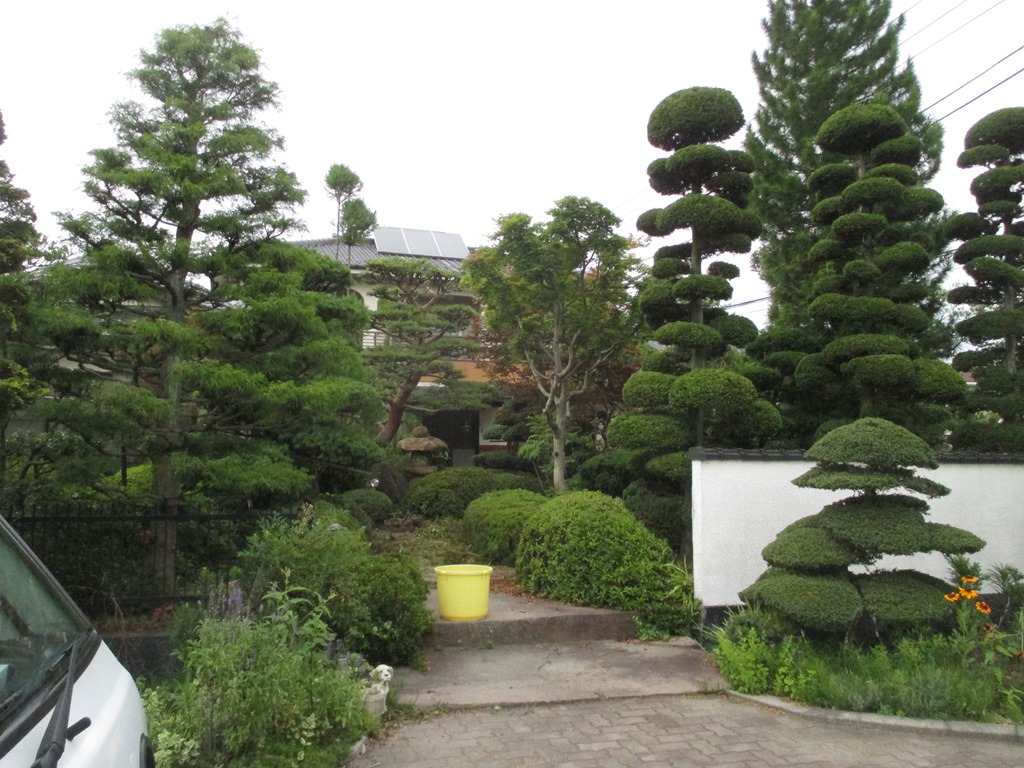 6月25日(水)晴、8時=午後4時過ぎまで庭師が2人来てくれました。黒松1本・チャボヒバ5本済みました。脚立を使わないで出来る低木は主人と私が剪定します。人材センタ-から派遣される庭師で、毎年同じ方が来てくれますので安心してお任せしています。 午後1時~石和ホテル瑩山で仕事の説明会参加、帰って2メ-トル位の黒松の剪定2本済ませました。25日 内藤初三