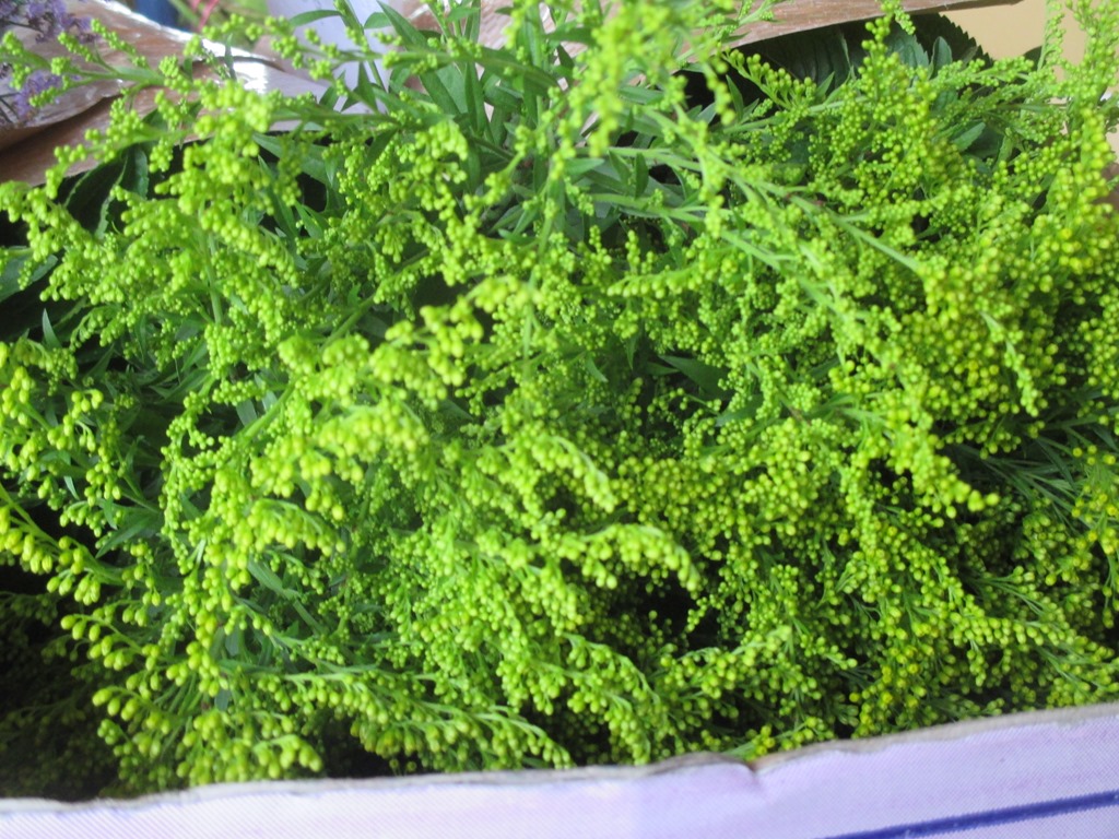 6月19日、(木)今日、所により雨情報、雨が降ると切れない「ソリダコ」の花を切り終えて、仕事の仲間(14人)と伊勢町で昼食を作って美味しくいただきました。ナス・ヅッキ-二-・生野菜「スイトチャドル」を持って行きました。お花も使って頂くよう、ソリダコタラ・ ストケシア・アルストロメリアを皆さんに差し上げました。ストケシアは見たことがないそうで喜ばれました。画像がなく済みません。19日 内藤初三