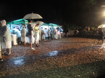 8月8日.夜8時、開演の、清里フィールドバレエ、先ほどまで土砂降りの雨の中、誰もが中止かと思っていたのに、わずか15分くらいで、再開ができる運びとなりました。