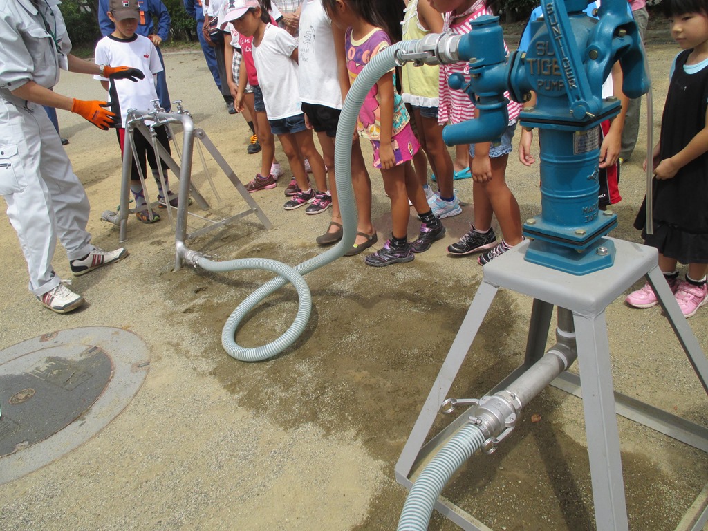↑学校のプ-ルで救命ボ-トの使い方 ↑非常用貯水槽のシステム使い方↓2画像