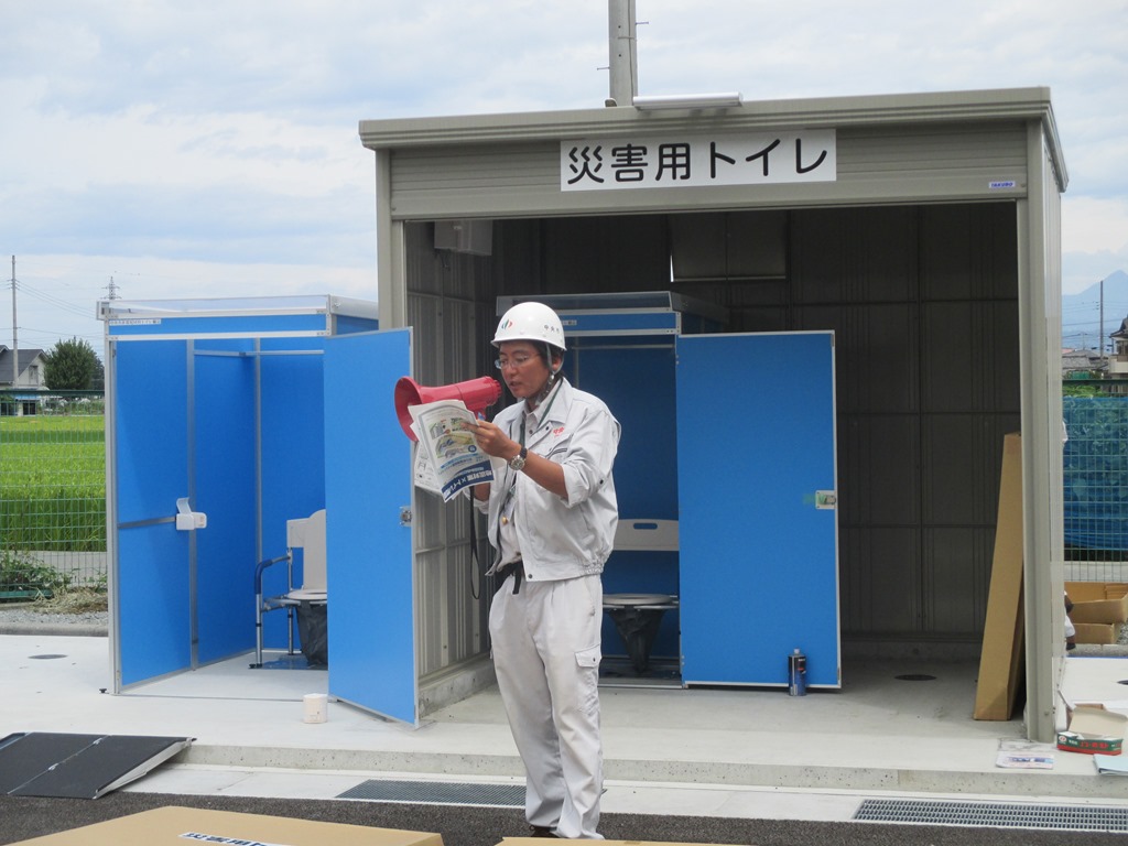 防災用トイレ設置と使い方 マンホ-ルトイレになっています。