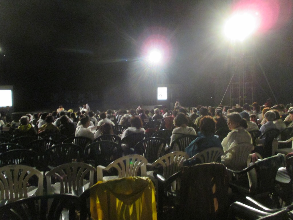 全体を取り仕切っている、舩木社長や、会場の設営を任されている、弟の、舩木専務さんの、日ごろの心掛けが、良いからでしょうか、8時ちょっと過ぎに、雨はピタリと止み開演の運びとなりました。舞台の上を、雑巾で拭く姿や、椅子をみんなで雑巾で拭いている姿には、フィールドバレエ以上の思いが、心に、残りましたあと2日、もう一度(4回目)行ってみたいと思う気持ちと、台風が、バレエの会場だけは、通り過ぎてもらいたいと思う気持ちで、いっぱいです。願いは必ず叶う事を、信じています。