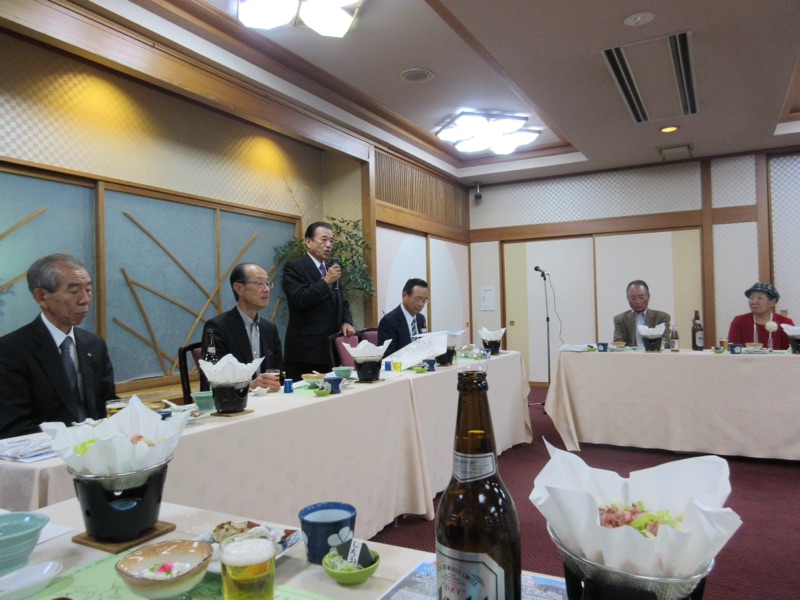 会歌を合唱のあと、東條会長の挨拶を聴き協議事項にはいりました。5名出席