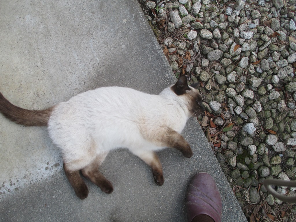 鴨に餌を与えていると、子犬が散歩で近寄って来て、ぬいぐるみのような柄に驚きました。顔が茶色、とても可愛いです。