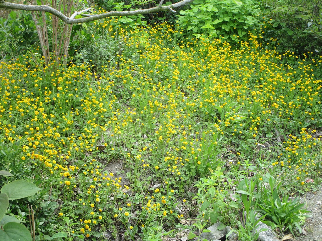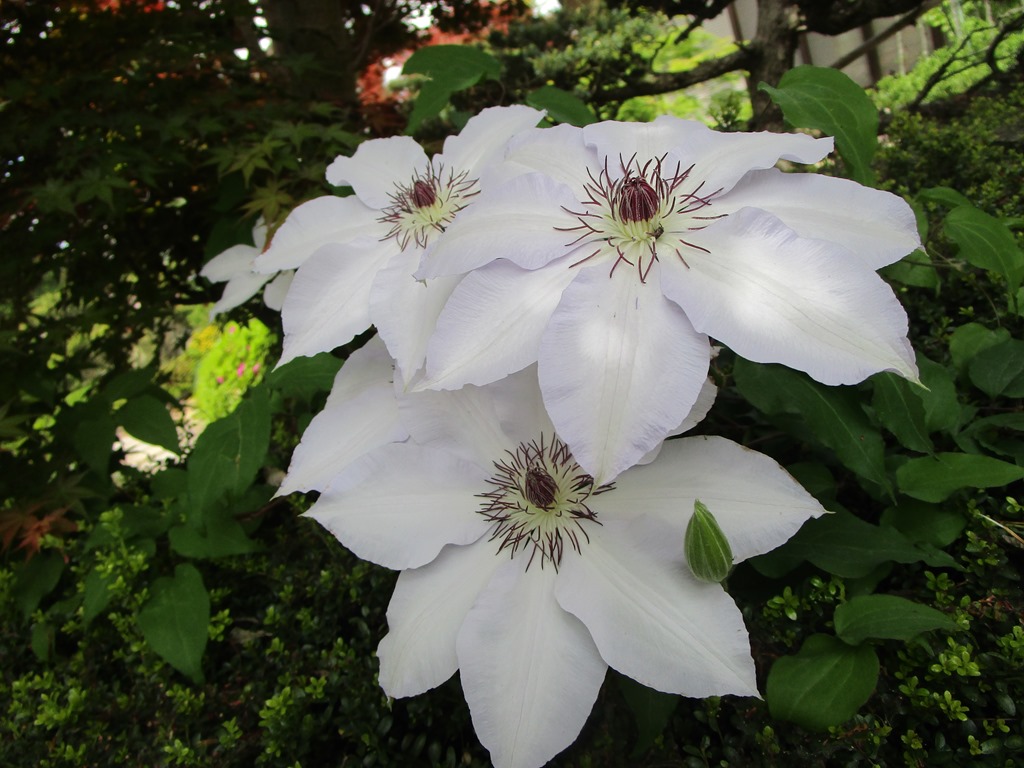 紫のしゃくなげ、数えて55の花を見ました。テッセンも種が舞い落ちあちこちに咲き誇っています。