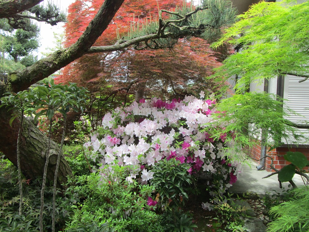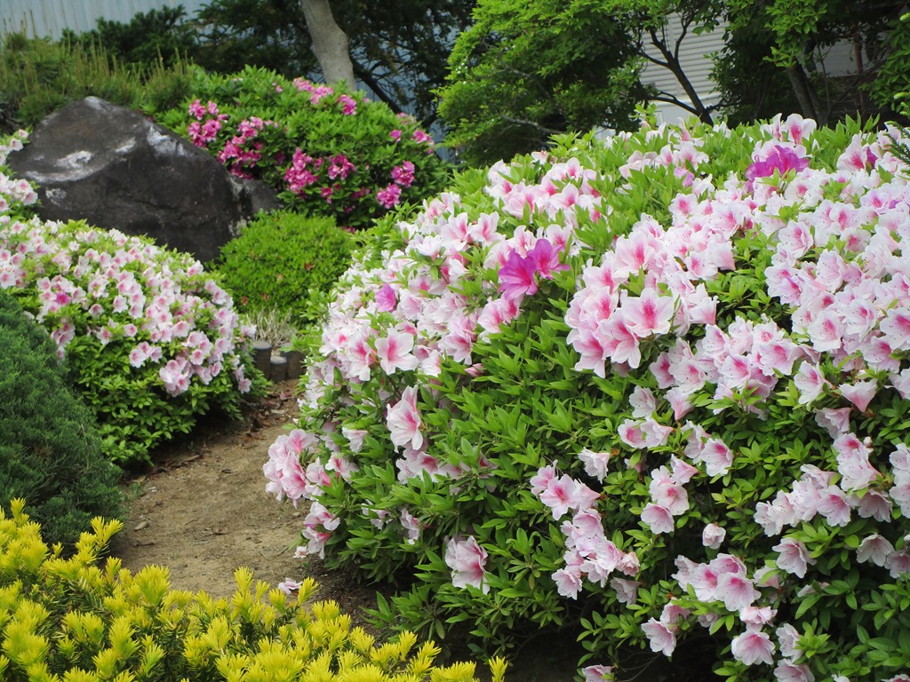 ツツジが色取り咲き、とてもきれいです。