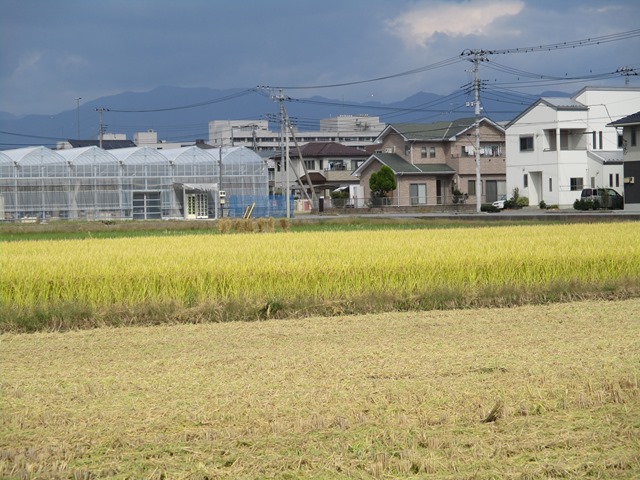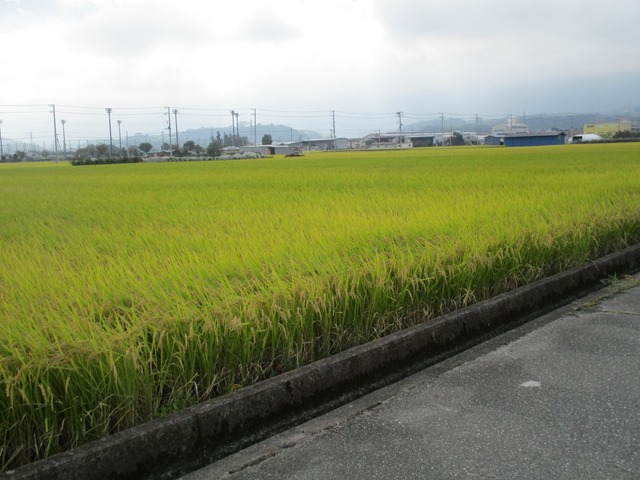黄金色した稲の穂が垂れさがり、今にも刈れそうです、