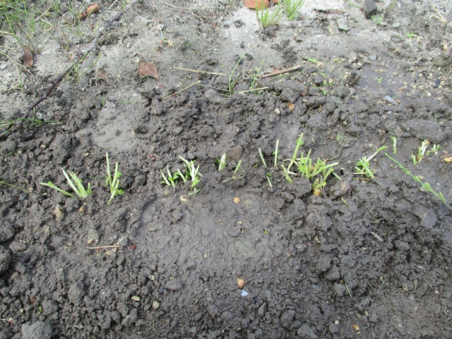 [グリンピ-ス」の豆苗の、残った茎を一列に植えました。