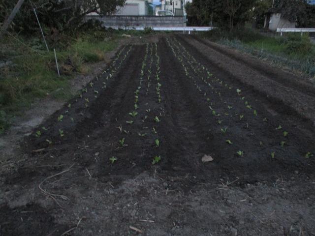 明日、そこを耕してもらい、レタスを移植予定です。