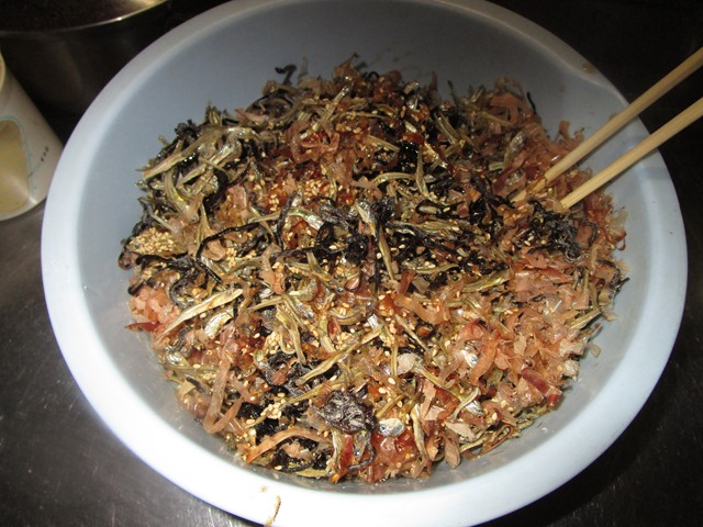 お赤飯を炊いて、お祝いをしてあげました。沢山の赤飯を、オニギリにしてあげたら、全部自分の物だと、抱っこして持ち歩いて喜んでいました。夕飯は、パパを混えて、ケーキでお祝いをするんだそうです。ご覧になってください、