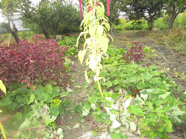 私は、掛ける前に、カボチャやピ-ナツ回りの草を取り、午前中が済みました。