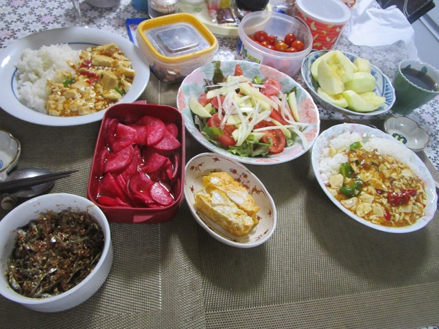 16日.隣のお兄ちゃんから→吉野家の「牛すき丼」を、2個 届けてくれましたので.私は、お返しに→餃子と、漬物を作って差し上げました、喜ばれました、