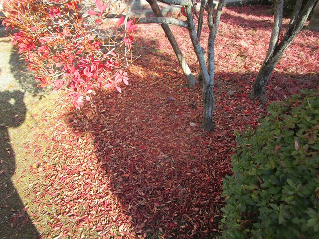 9日.甲府市住吉に行った帰りに、隣の奥さんと一緒に→小瀬スポーツ公園に寄って、ウォーキングしながら公園内の、紅葉を見に行ってきました、写真は、16時30分頃の、噴水公園の近くの紅葉です、ご覧になって下さい、