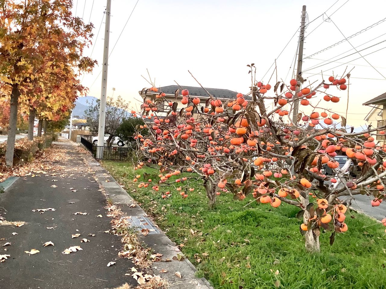 18日.歯医者さんのかえりに、お隣さんを誘って、市内の紅葉を見に行ってきました、道沿いに、まだ柿がいっぱい、真っ赤に実つけていてとっても綺麗でしたので、写真に撮ってきました、ご覧になって下さい。