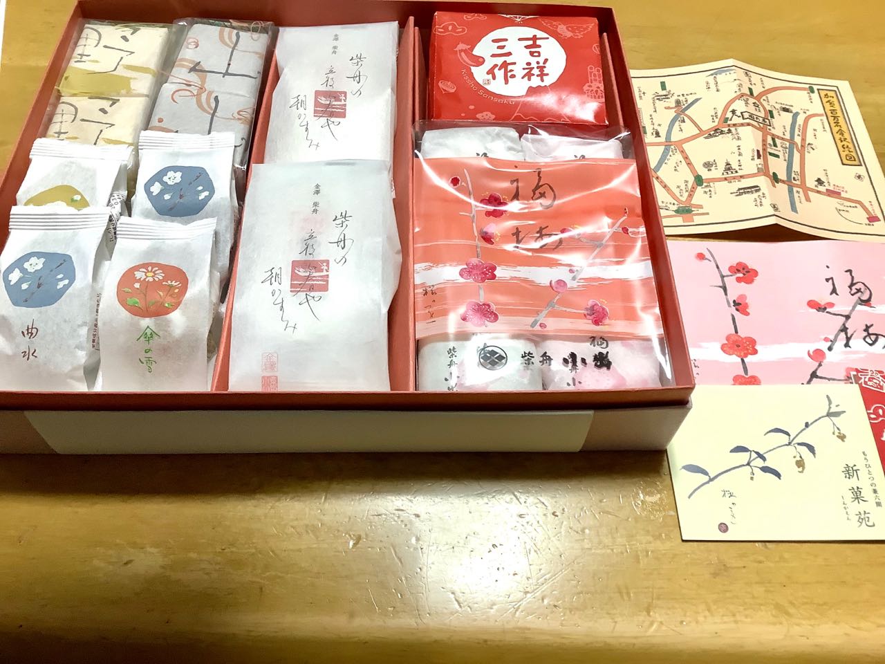 9日.石川県金沢市から、元金沢法人会女性部会長の浅野正子様から..紫舟「小出」の、加賀百万石で知られている銘菓てす、福梅や、吉祥三作、傘の雪、曲水、野、山、私の大好きの→柴舟等、幸せを感じているところです、