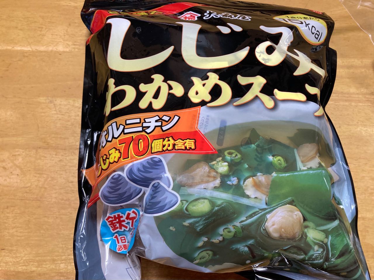 5日.しじみ→わかめスープを、長女から、いただきました、一食あたりの、カロリーが15Kカロリーです*とっても上品な味で、オルニチン→しじみ70個分含んでいるそうです.さっぱりしていて、美味しかったです、孫たちが、お変わりして、2杯ずつ飲みました、1袋で、鉄分は1日の必要量の2分の1取れるんだそうですご覧になってください、