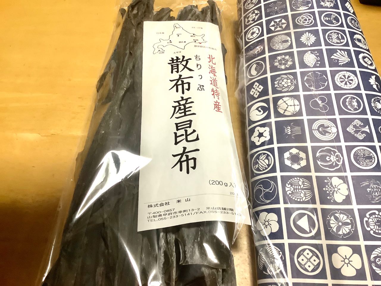 8日.もち吉の特選詰め合わせ、「びろうど」セットと→北海道産の散布産の高級コンブを、いただきました、ご覧になってください、