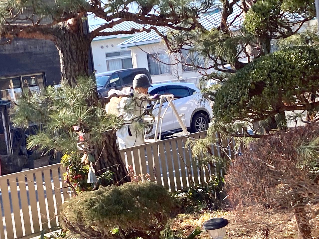 9日.我が家の庭の消毒を、どこか、知らない→おじいさんが、黙って消毒している、と、思い、そばに行ってみたら、変身していた、、我が家の「能面師」→一邦さんでした、これはビックリ、この寒いのに何の消毒をしているのかと、聞いたら、榊の木と、金環の木と、梅の木と、紫陽花の木に、→カイガラ虫の消毒を、していたんだそうです。ご覧になって下さい、