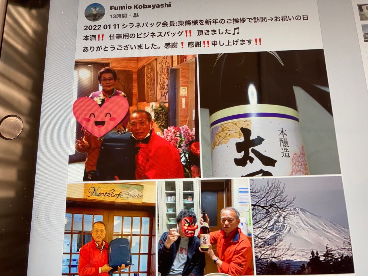16日.先日1月11日に神奈川県愛川町にお住まいの、元リコーに勤務をしていた、小林さんが、我が家に、新年のご挨拶にお見えになったときの写真を、投稿してくれました、私はこの写真をコピーして、投稿いたします、孫の顔は「ハート」に、なっていて、とても可愛いです、、ご覧になってください。