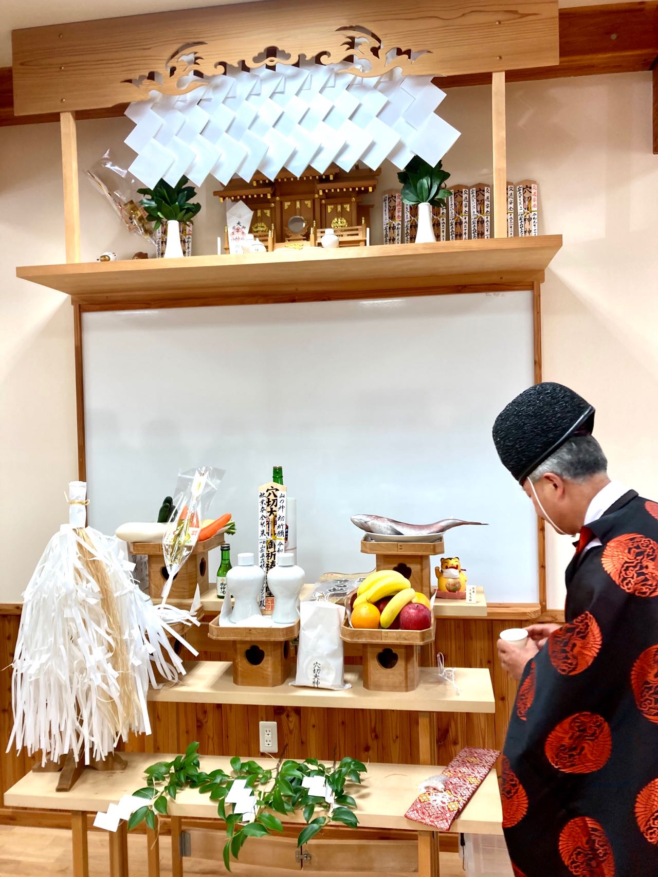 17日.10時より、甲斐市下今井の、山梨県森林土木コンサルタント事務所に於いて、山の神様の1年間の安全を祈願して、甲府市の「穴切神社の宮司さん」に、来ていただき、職員も全員で、安全祈願祭を行いました、私は、理事長として、最初に、玉櫛をあげさせて頂き、次に佐野専務、篠原総務部長が玉櫛をあげた後、社員が全員で、祈願しました、ご覧になってください、