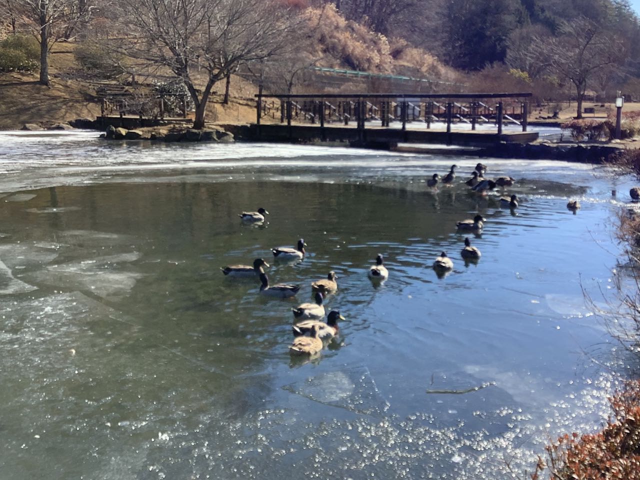 22日.午前、北杜市にある大門ダムの近くに、湧き水を汲みに行ってきました、びっくりしたことに、大門ダムは一面が氷で、氷と氷が擦れあって、キシキシと言う、大きな音が聞こえてきました、帰りに、南清里の道の駅によって、お花や、野菜、カボチャ、ほうとう、レタスブーゲを、を買ってきました、この寒い中、氷水の中を、鴨は、スイスイと泳いでいました、遠くに見える、甲斐駒ヶ岳や、八ヶ岳が真っ白く見えて雄大でした、ご覧になってください、