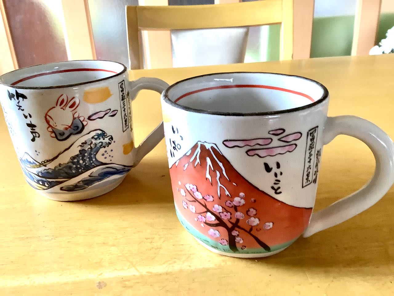 2つのコーヒーカップに→いいこといっぱい→笑い声いっぱい..の、「富嶽36景」の、素晴らしい絵が描かれています、2人で仲良く飲んでねと言って→プレゼントしていただきました.大切に使いたいと思っています、感謝です