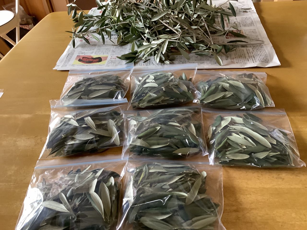 先日も、女性部の会議に、オリーブの葉を洗って、太陽に干して、小さい袋に入れて、ローリエの葉と一緒に、多くの人に差し上げました、