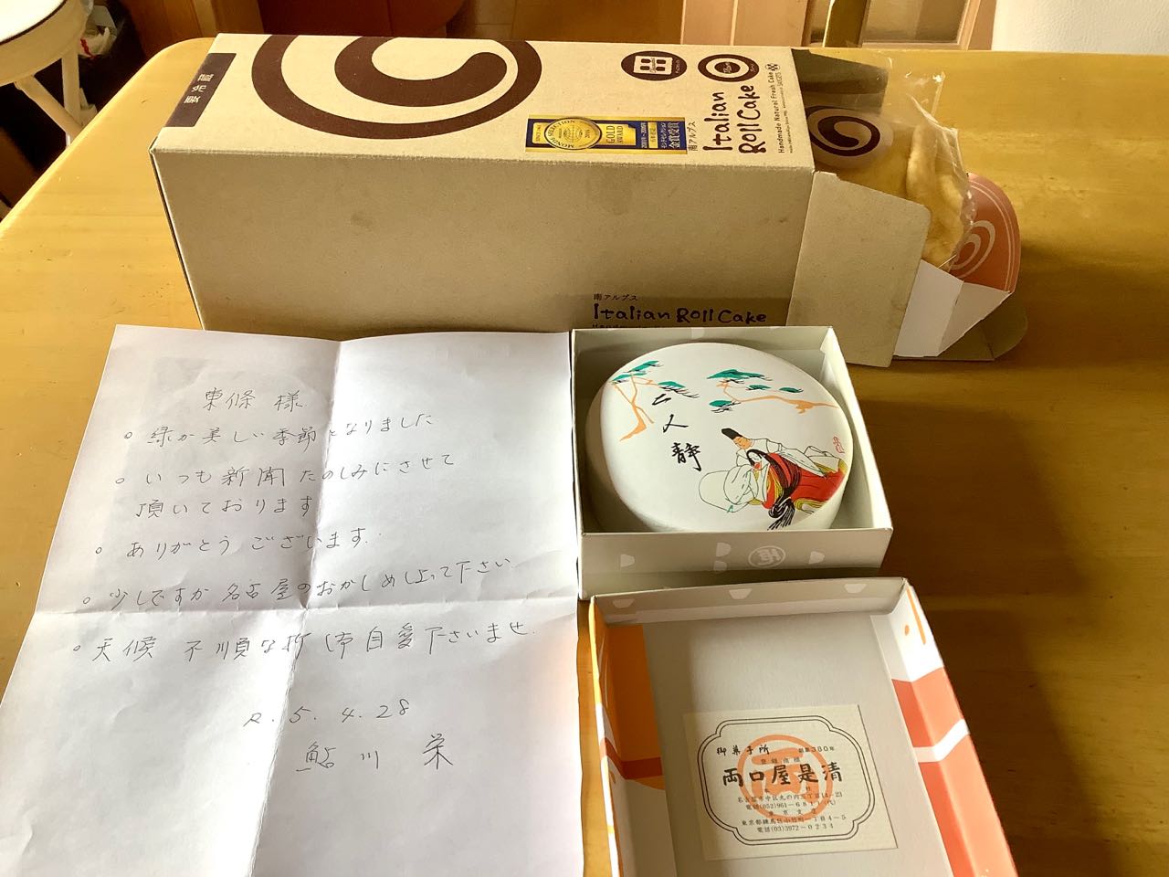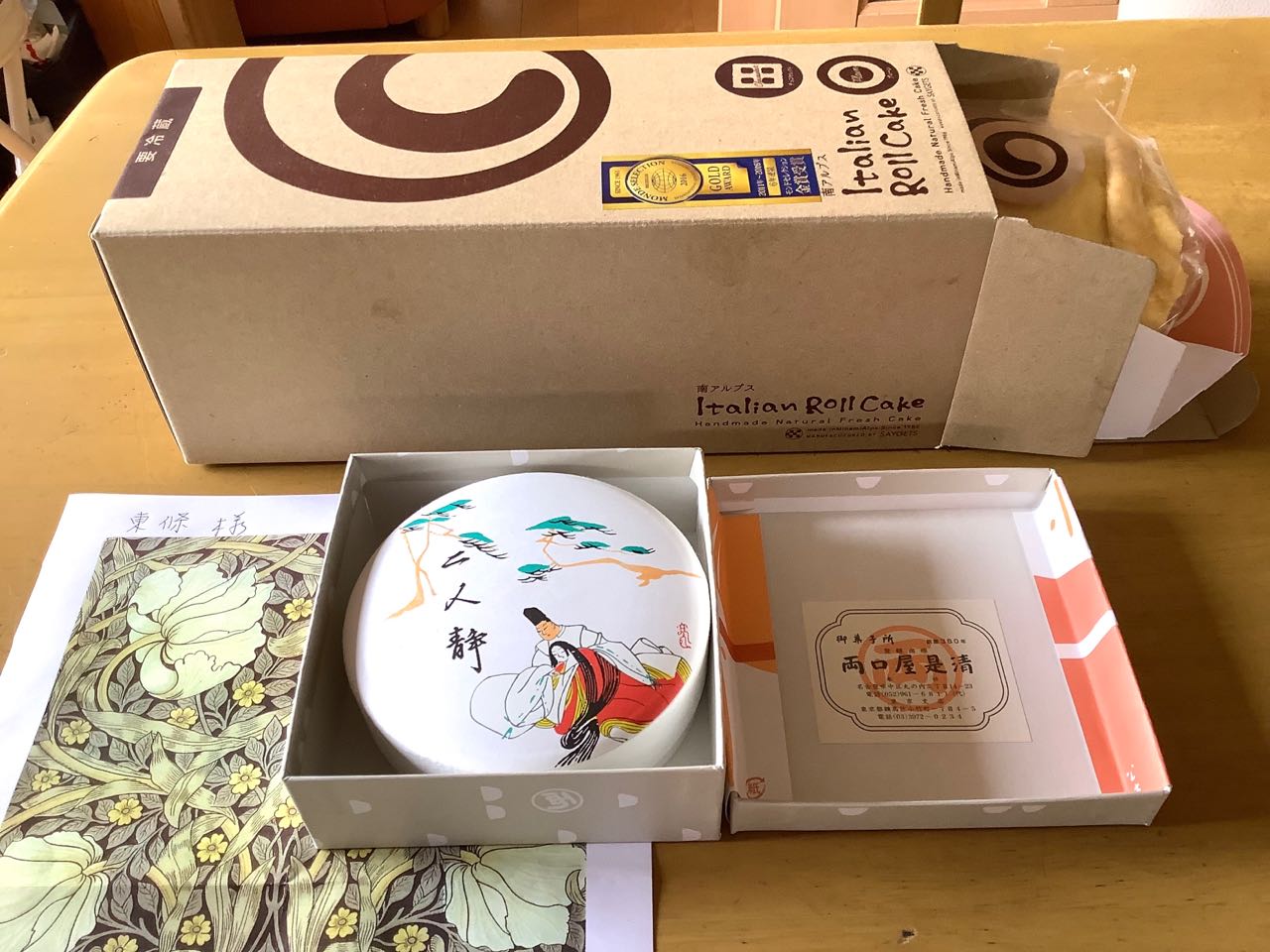30日.亜紀子さん→(次女)から.イタリアンロールと、甲斐市の「かおり幼稚園」の鮎川栄先生から、名古屋の、お菓子所→銘菓.両口屋是清.の、二人静→和三盆糖使用→(らくがん)を頂き、数年前にフランスに行った時.お土産に、買って来た、→紅茶の香りを、楽しみながら、、上品な和菓子を頂いています、ご覧になってください、
