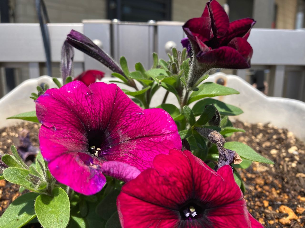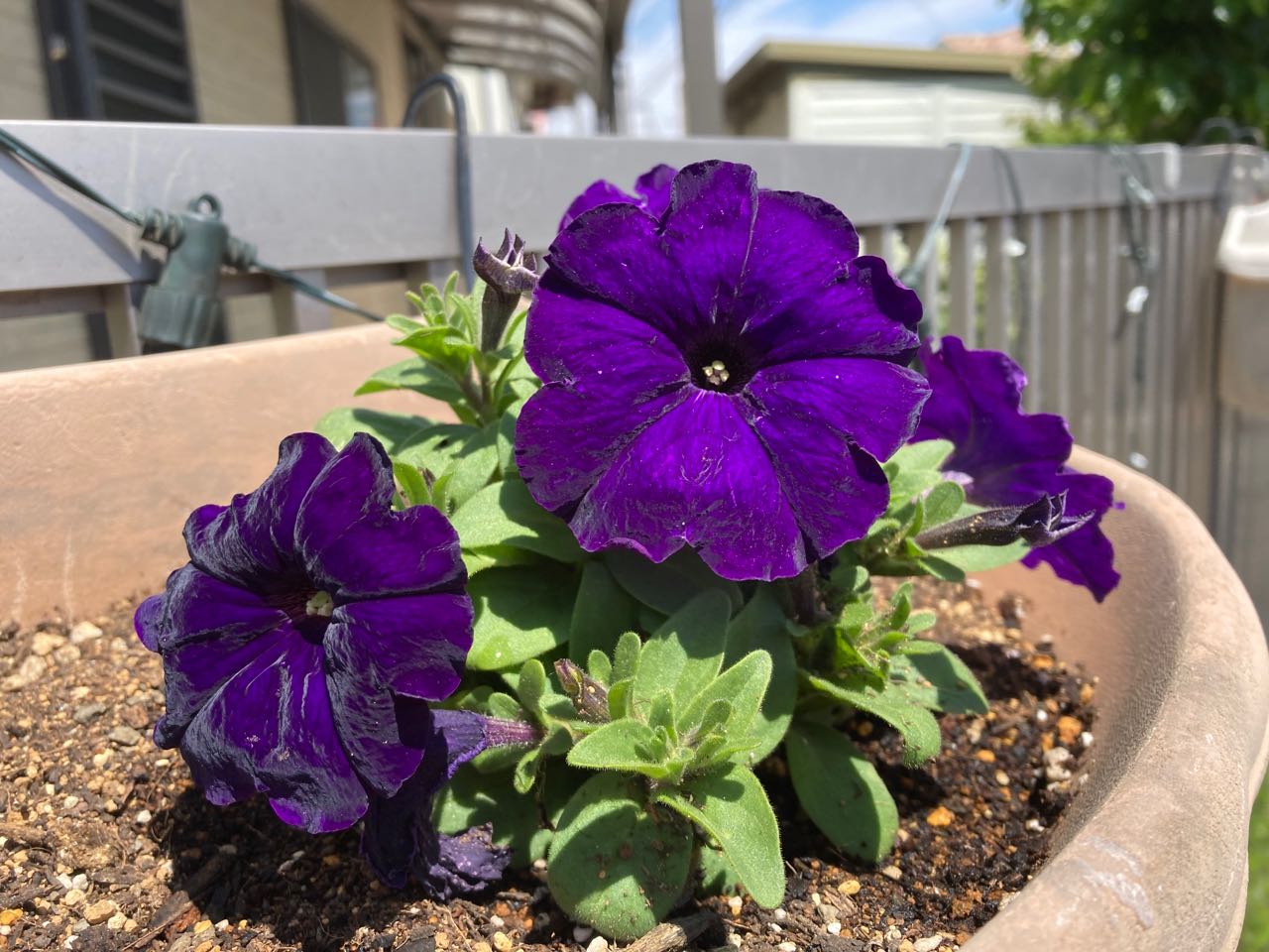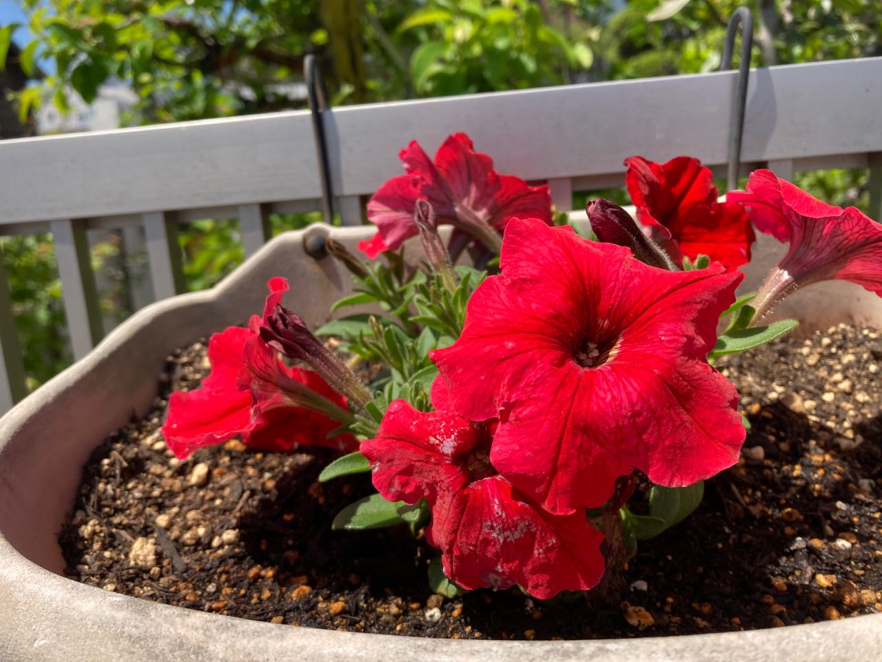 3日.一邦さんが、家の南側に吊るしてある→なが~~い、フェンスに、夏用のお花を全部.16鉢を、植え替えました、とっても、綺麗になり、信号待ちの人、、散歩やウォーキングや、隣の大きなスーパーに、お買い物に通りがかった人達が、きっと喜んで見て.くれる事でしょう、楽しみです、ご覧になって下さい、