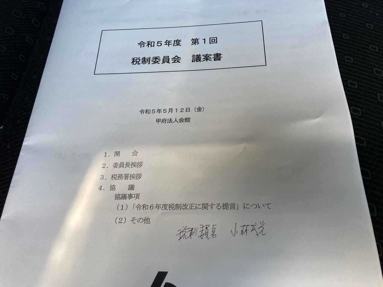 12日.午前10時から、甲府市法人会館に於いて、令和5年度、第1回.税制委員会が開催されました、沢山の協議事項で、しっかりと、12時までかけて協議しました、お昼にお寿司をいただいて.きました。ご覧になってください、、、
