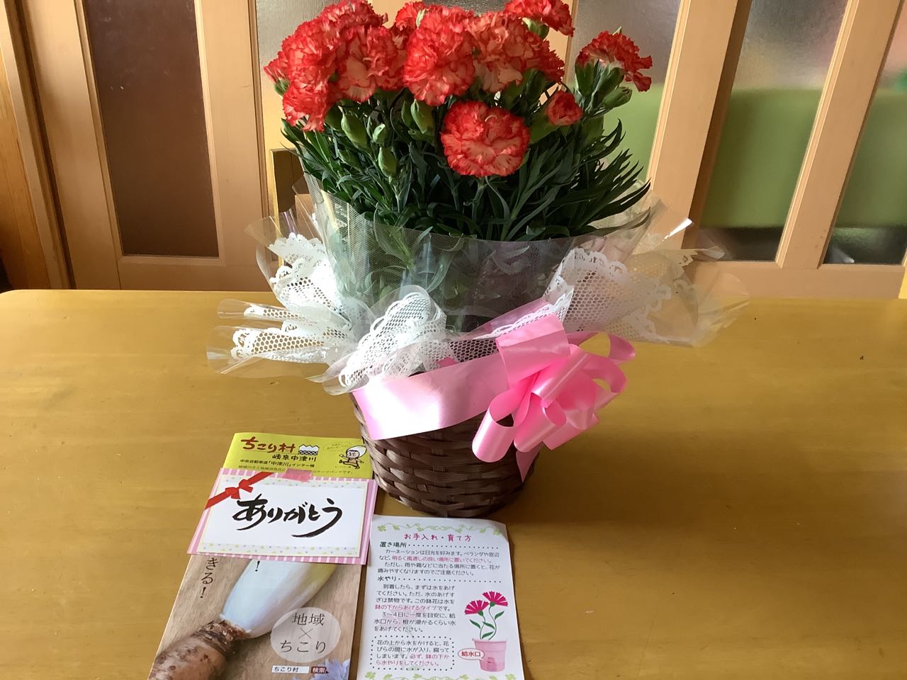 12日.岐阜県中津川市の.「ちこり村」から.きれいな.カーネーションの花が、届きました。、早々に明るく、風通しの良い場所に、飾っておきました、