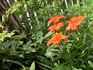8日.我が家の、庭先に、いろいろな花が咲き始めました、大きな「松の木」の.根本に♪「オレンジ色の百合の花」「ピンクのツツジ」「黄色い花」「南天の花」「ドクダミの花、」が、とてもきれいに、咲き誇っています、ご覧になってください。、