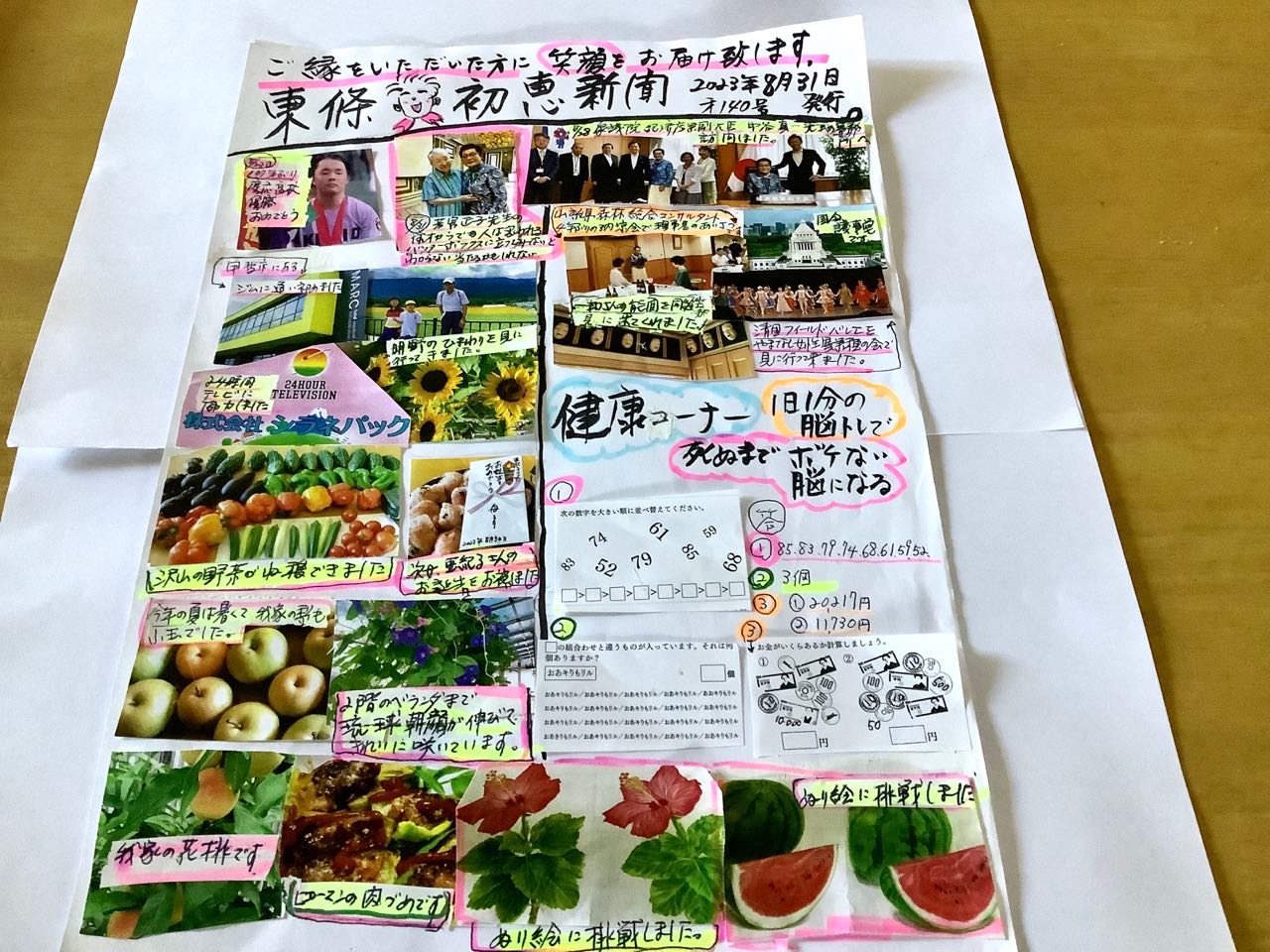 甲斐市天狗沢に.お住まいの.清水さんが→送ってくれました、孫や→グループホームの入居者の楽しみが増えました.ご覧になってください。、
